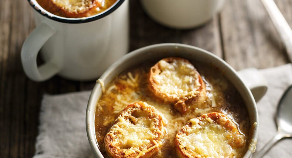 Une soupe bien chaleureuse, pleine de goût, avec un fromage fondant gratiné… un incontournable de la cuisine française qu’on ne se lasse jamais de savourer ! Ingrédients : Préparation :
