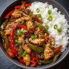Sauté de Poulet à l’Ail & Poivrons avec Riz Vapeur