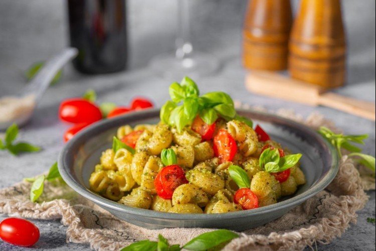 Pâtes au Basilic et aux Tomates avec Sauce Pesto