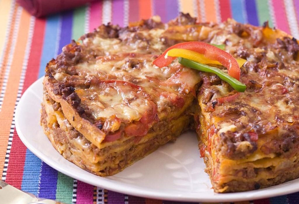 Cette base est proche des recettes modernes de lasagnes de tortillas, souvent composées de viande, légumes, tortillas et fromage ()